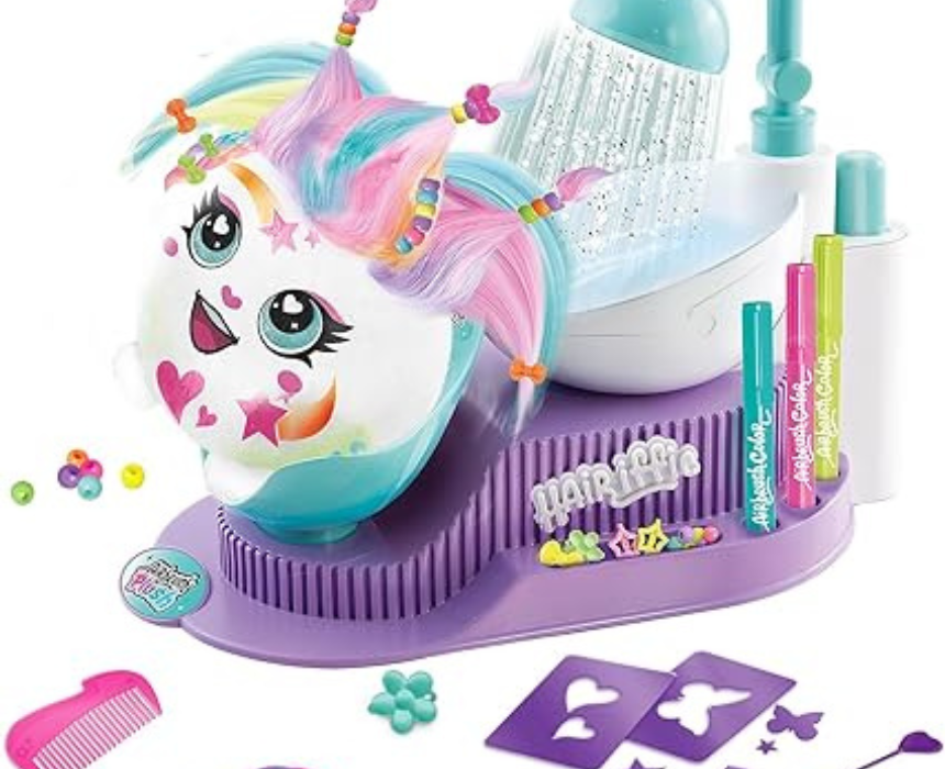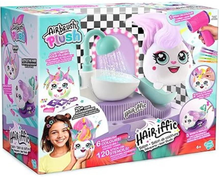 Hair’Iffic Hair Salon Toy is a creative playset that lets kids explore hairstyling and salon role play in a fun and imaginative way. The set includes styling tools and accessories that allow children to create different hairstyles while enjoying pretend beauty salon sessions with friends or family. It can be used to style dolls or play figures while encouraging creativity, storytelling, and hands on play.