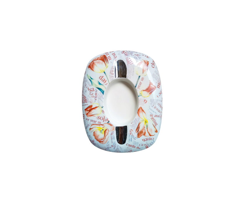 This hand-painted cigar ashtray showcases vibrant red tulips on fine porcelain with platinum accents, crafted with permanent colors for lasting beauty. Ideal for cigar enthusiasts or as a decorative piece, it adds a touch of elegance to any smoking area. Display it on a coffee table, bar, or desk to combine functionality with refined floral artistry.