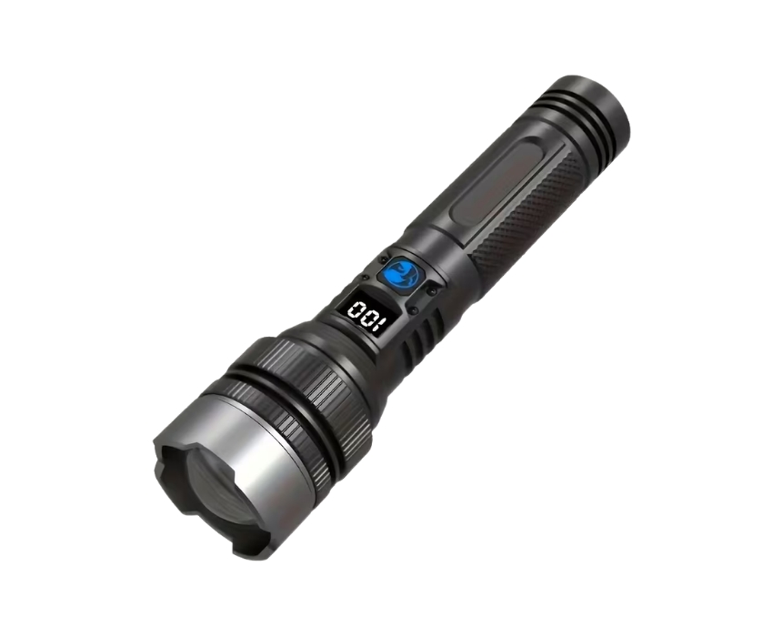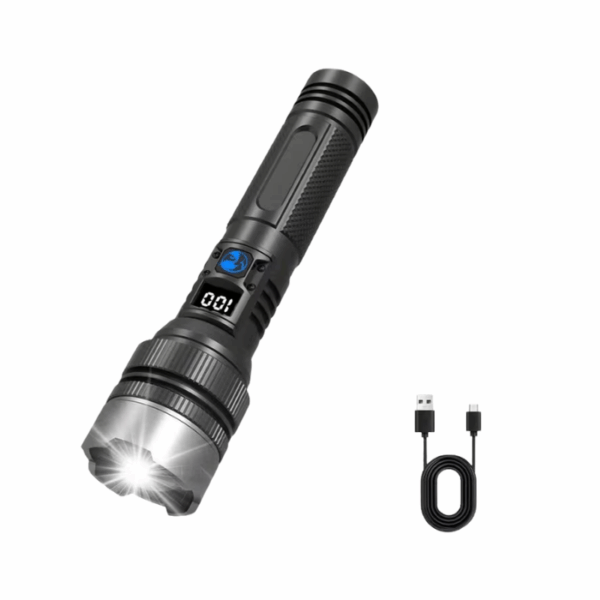 The Handheld Portable LED Rechargeable Flashlight features a high-brightness LED, digital battery display, and telescopic zoom for adjustable beam focus. Its durable, lightweight design makes it ideal for camping, hiking, fishing, hunting, and emergency use. Rechargeable and portable, it provides reliable illumination for outdoor adventures and everyday preparedness.