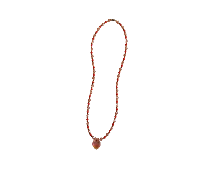 This handmade heart pendant necklace features a vibrant orange heart pendant adorned with sparkling orange and soft pink crystals, accented by small golden bulletins for a touch of elegance. Perfect for layering or wearing alone, it adds a playful yet chic pop of color to casual and dressy outfits. Ideal for everyday wear or gifting, it enhances any look with a delicate and feminine charm.