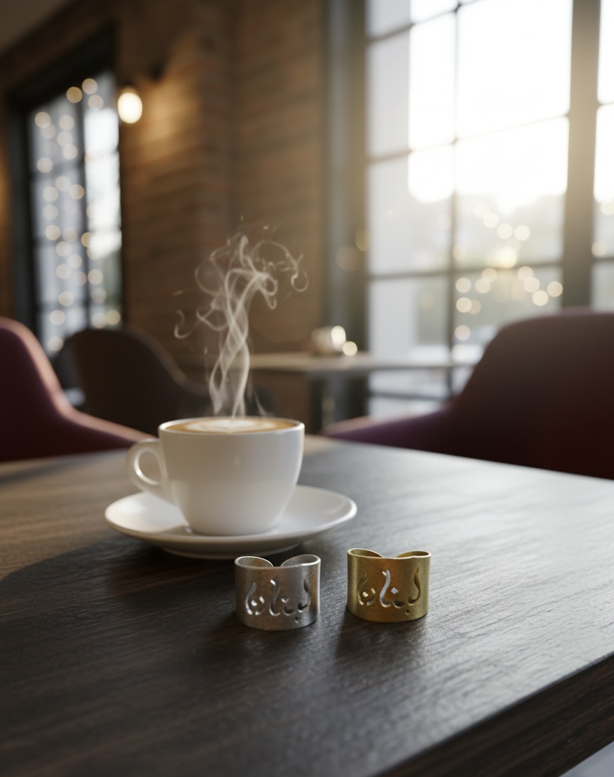In both gold brass and silver aluminum comes this beautiful Arabic calligraphy ring spelling Lebanon.