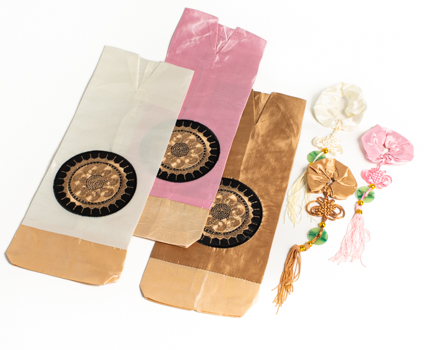 Hand-made piece to add elegance to wine-gifting or display. Dimension: 36 cm x 13 cm, for a standard shape wine bottle. This package includes the wine sleeve as well as a wine bottle collar.