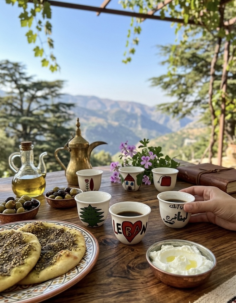 This handpainted Lebanese coffee cup set includes six cups featuring designs that celebrate Lebanese culture, such as the Cedar tree, traditional houses, the flag, a tarboush, and meaningful symbols. Packaged in a gift box, they are perfect for serving Lebanese coffee or as a vibrant cultural keepsake. A colorful and artisanal addition to any kitchen or collection.