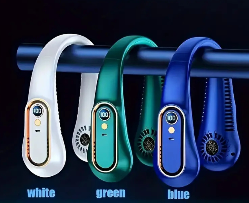 Stay cool and comfortable with this USB rechargeable hands-free neck fan featuring dual adjustable wind heads for powerful airflow. Lightweight and quiet, it can be worn around the neck for outdoor activities, travel, office work, or home use, with multicolor design adding a stylish touch. The fan charges via USB, offers up to six hours of use, and provides three speed settings for personalized cooling wherever needed.