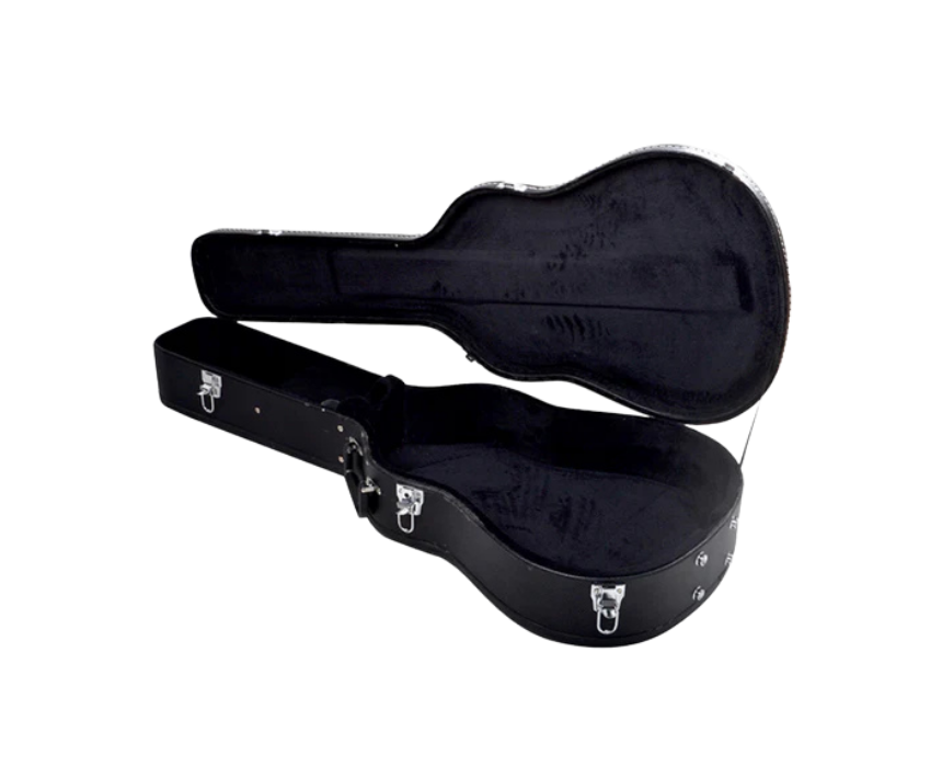 The Awtar Hard-Shell Wooden Leather Black Case is designed to protect standard 39-inch classical guitars. Featuring padded neck support, plush suede-lined interior, and a hard plywood exterior wrapped in PU leather, it provides superior scratch resistance and shock absorption. Equipped with metal feet, sturdy chrome locks, a molded handle, and an accessory compartment, it ensures safe and convenient transport for musicians on the go.