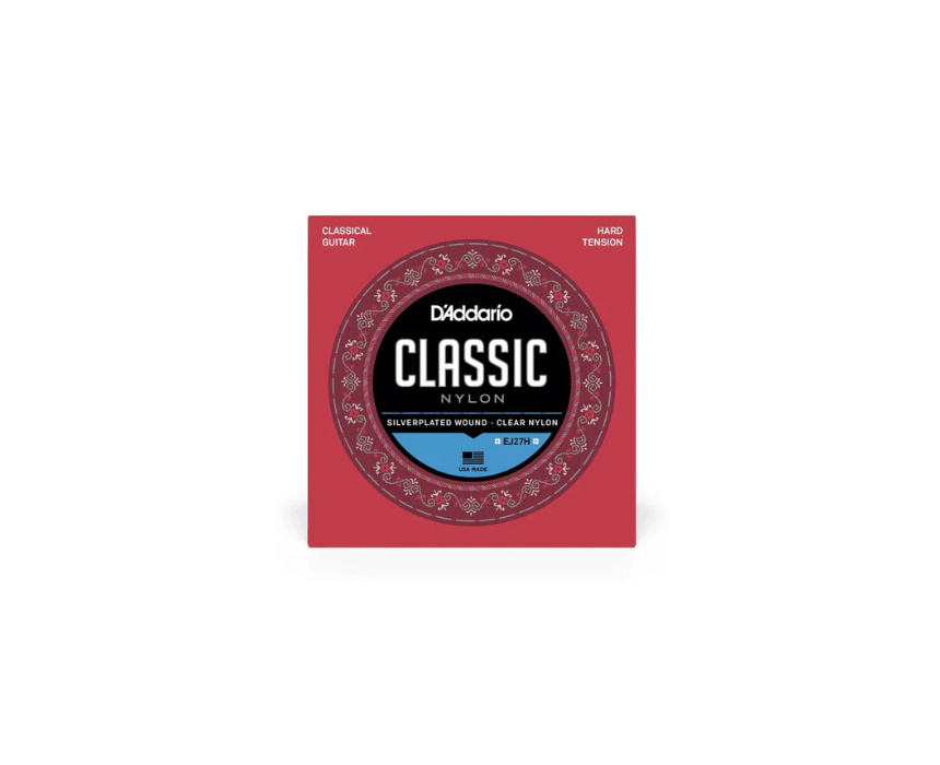 The D’Addario EJ27H Classic Nylon Hard Tension Strings are designed for beginner and advancing classical guitarists seeking a rich, bold tone with strong projection. Featuring silver-plated copper wound basses and clear nylon trebles, they offer durability, comfort, and expressive sound. Ideal for classical performance and practice, these full-scale, tie-end strings deliver a smooth and responsive feel for confident playing.>