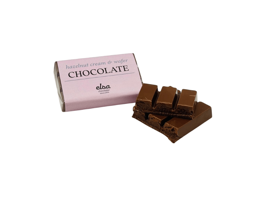 Savor the luxurious and alluring taste of our Hazelnut Cream & Wafer Chocolate Bar. Handcrafted with exquisite Belgian chocolate and enriched with indulgent hazelnut and crunchy wafer pieces, this bar is the ultimate delight for any chocolate lover. Elevate your snacking experience with this refined and sophisticated delicacy.