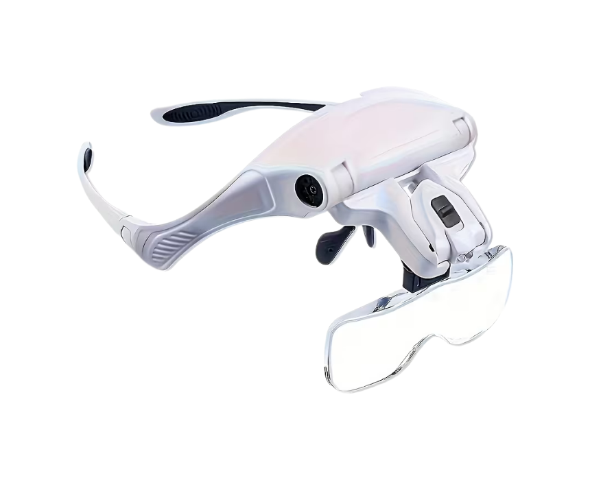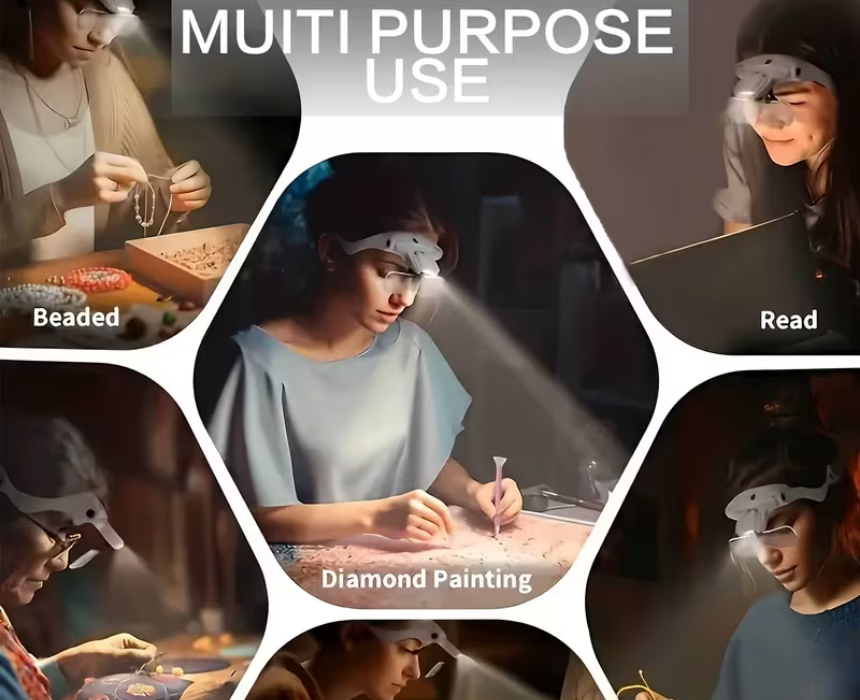 The Head-Mounted LED Work Light features 5 interchangeable magnification lenses and an integrated LED for enhanced visibility. Its hands-free, adjustable design is ideal for crafting, reading, repairs, engraving, or welding. Lightweight and battery-powered, it provides precision, clear vision, and convenience for home or professional tasks.
