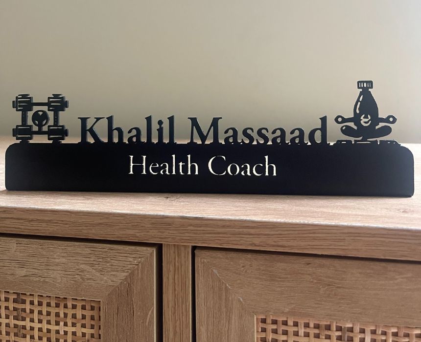 The Health Coach Desk Plate is a sleek and professional desk display available in medium size (up to 25 cm) and large size (up to 35 cm). Designed to highlight a passion for wellness, it fits perfectly on desks, shelves, or clinic counters.