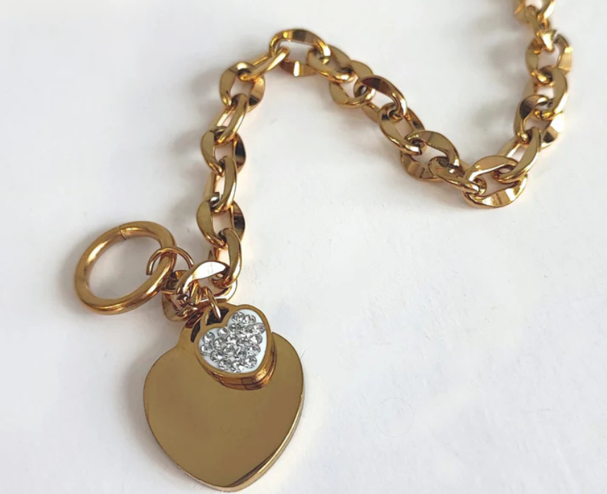The Lucky Heart Charm Bracelet is crafted from 18K gold plated stainless steel and is water resistant, ensuring durability and everyday elegance. Its charming heart pendant adds a delicate, romantic touch, perfect for stacking with other bracelets or wearing alone as a statement piece. Style it with casual or dressy outfits to enhance any look.