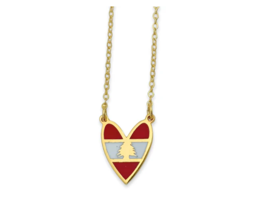 Heart Lebanese Flag Necklace