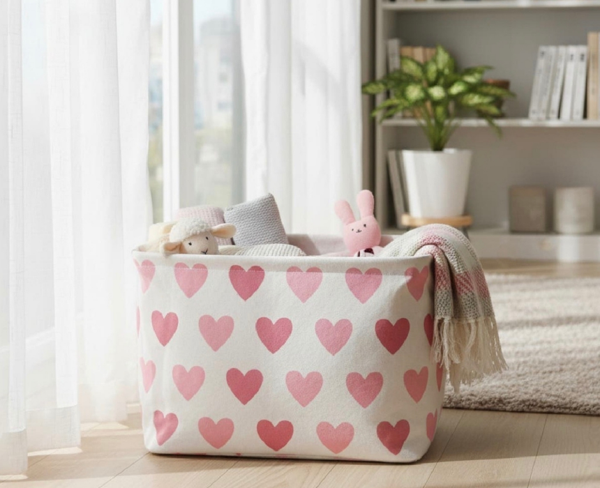Hearts Printed Storage Basket