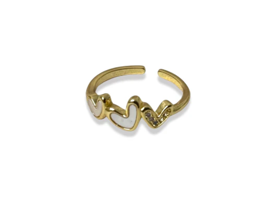 This hearts ring features a romantic design that adds a delicate and charming touch to any jewelry collection. Crafted to complement both casual and elegant outfits, it can be worn alone for a subtle statement or stacked with other rings for a trendy layered look. Ideal for everyday wear or special occasions, it brings a timeless symbol of love and style to any outfit.