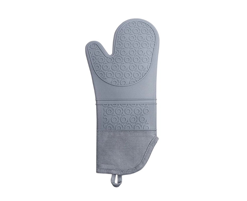 The HeatShield Silicone Glove is a premium, food-grade oven mitt designed for high-temperature cooking, baking, and BBQ. Made from heat-resistant silicone with a textured, non-slip surface, it provides full hand and wrist protection while remaining lightweight and comfortable. Generous in size and customizable with a personal name or logo, this glove combines safety, durability, and style for any kitchen or grilling session.