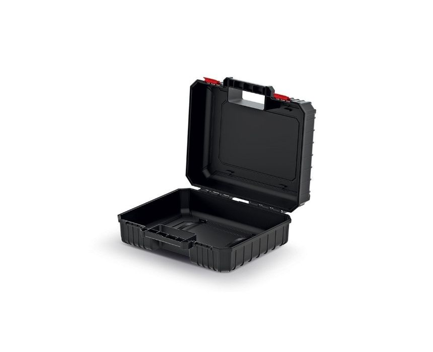 The Kistenberg KHV40 Heavy Tool Case is a compact, rugged solution for secure tool storage and transport. Built with high-strength polymer construction, it features an ergonomic handle for comfortable carrying and two internal fastening straps to keep tools firmly in place. Ideal for professionals on the move, it fits seamlessly into any mobile workstation or organized garage setup.