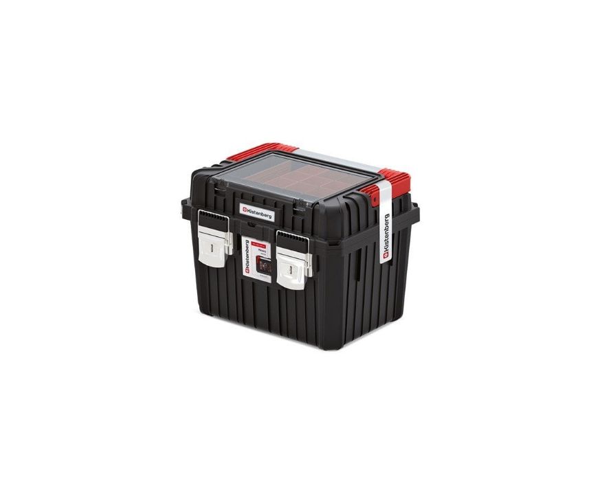 The Kistenberg KHVA453535BSM Heavy Toolbox is built for professionals who need secure, organized, and durable storage. Featuring a large foldable aluminum handle, deep tray, and a lid organizer with 3 separators and 4 boxes under a tough polycarbonate cover, it ensures maximum efficiency. With a polymer-reinforced body, galvanized metal latches, and a solid gasket for enhanced protection, it’s perfect for rugged job sites or neatly styled workshop setups.