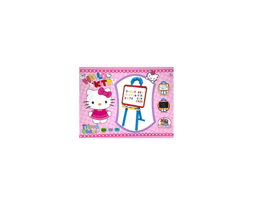 The Hello Kitty Double-Sided Learning Easel Board features a magnetic whiteboard on one side and a chalkboard on the other, offering fun and educational play for children. It includes magnetic numbers and letters, chalks, and an eraser to help build math, reading, and drawing skills while encouraging creativity and hands-on learning. Simply set it up on a flat surface in a playroom or classroom for easy access and engaging daily practice.