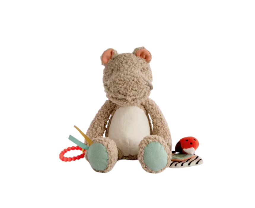 A soft and engaging activity toy designed to stimulate early development through sensory play. Featuring a mix of textures, sounds, and interactive elements like a squeaky friend, crinkly tummy, rattle, and chime, it encourages motor skills, touch, and imaginative exploration. Hand held and cuddly, it is perfect for playtime, snuggles, and on the go entertainment for little ones.