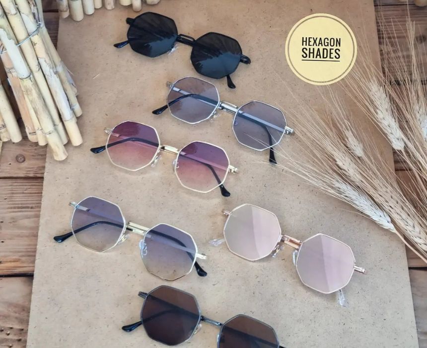 Hexagon Shades sunglasses feature a sleek metallic frame and provide full UV protection, combining durability with modern edge. Available in standout colors like Black, Blue, Green, Rose Gold, Cherry Tint, and various gold-tone combinations, they’re perfect for adding a bold touch to any outfit. Ideal for both casual and dressy looks, these shades offer eye-catching style with practical sun protection.