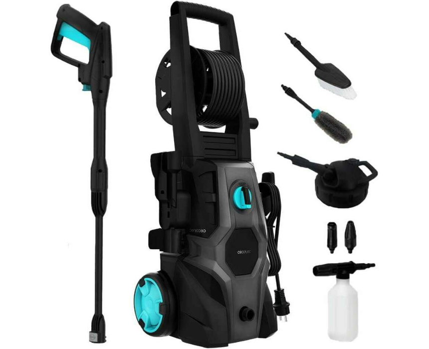 The 2000W Pressure Washer delivers up to 150 bar of power for fast, effective cleaning of patios, decks, cars, and pool areas. It features a 9-meter range, aluminum HardPump, adjustable foam bottle, and easy transport with handle and wheels. Quick-connect hose and lance with Auto Start-Stop trigger make cleaning safe and effortless.