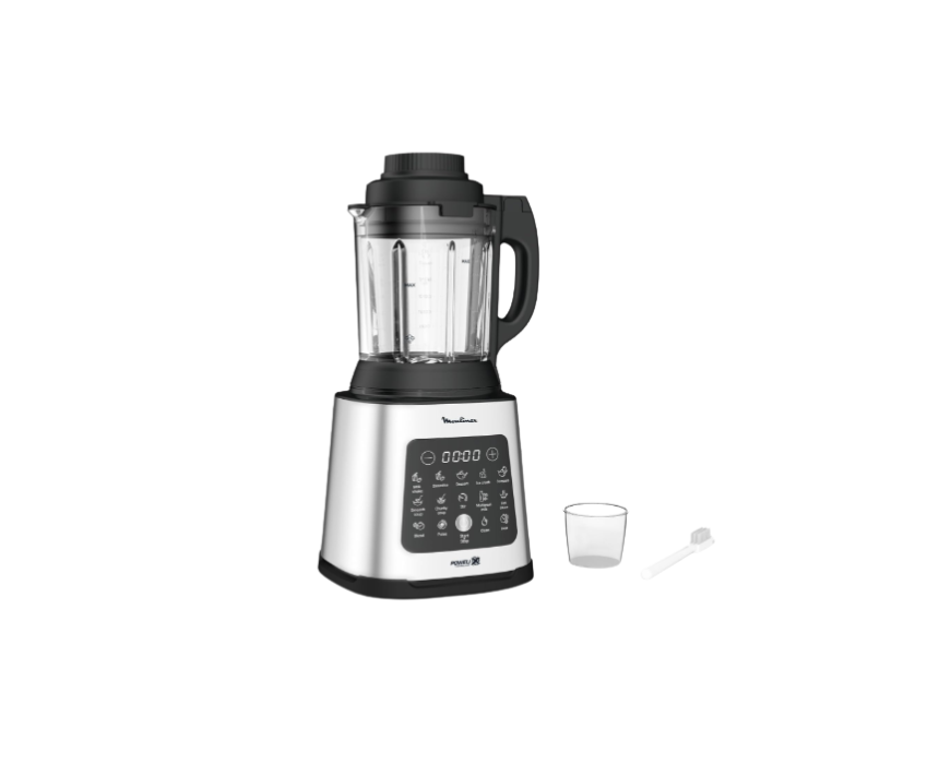 The Moulinex LM835D27 Perfectmix Cook High-Speed Heating Blender combines 1400 W power with 6 Powelix blades for fast, smooth blending. With a 2 L glass jar, 10 automatic programs, 6 speeds plus Pulse, and an Ice Crush function, it prepares hot and cold recipes—from soups to smoothies—with ease. Removable blades and dishwasher-safe parts ensure effortless cleaning, while included accessories enhance usability. Perfect for versatile, hygienic, and efficient meal preparation.