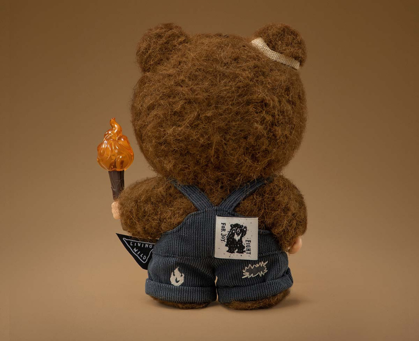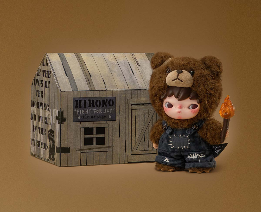 The POP MART Hirono Living Wild Series Fight for Joy Vinyl Plush captures Hirono in a fuzzy bear suit with hand-stitched details and a tiny torch, symbolizing courage and happiness. This soft, expressive figure adds emotional depth to any collection and displays beautifully on shelves, desks, or alongside other POP MART characters.