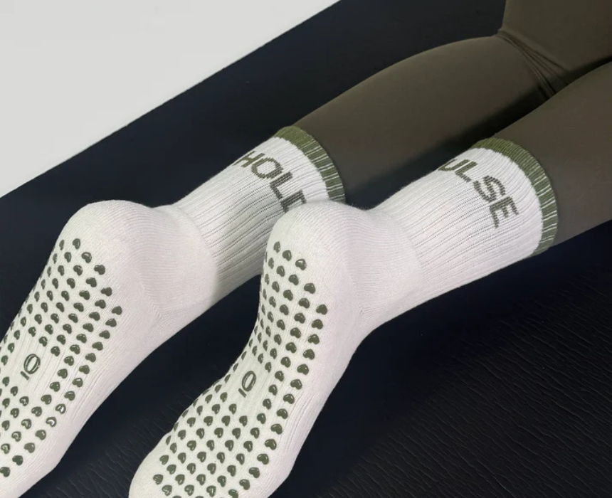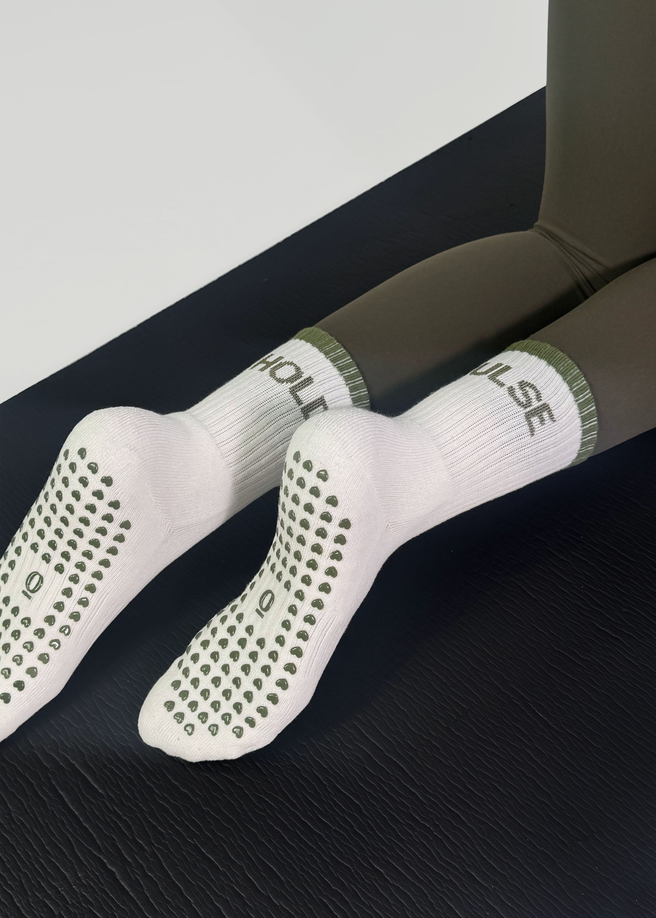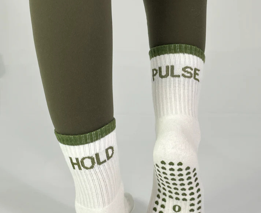 Hold & Pulse delivers a sleek, movement-ready design with supportive grip soles for stability during yoga, pilates, and everyday workouts. Comfortable and secure, this pair pairs effortlessly with activewear or loungewear for a confident, grounded feel in every session.