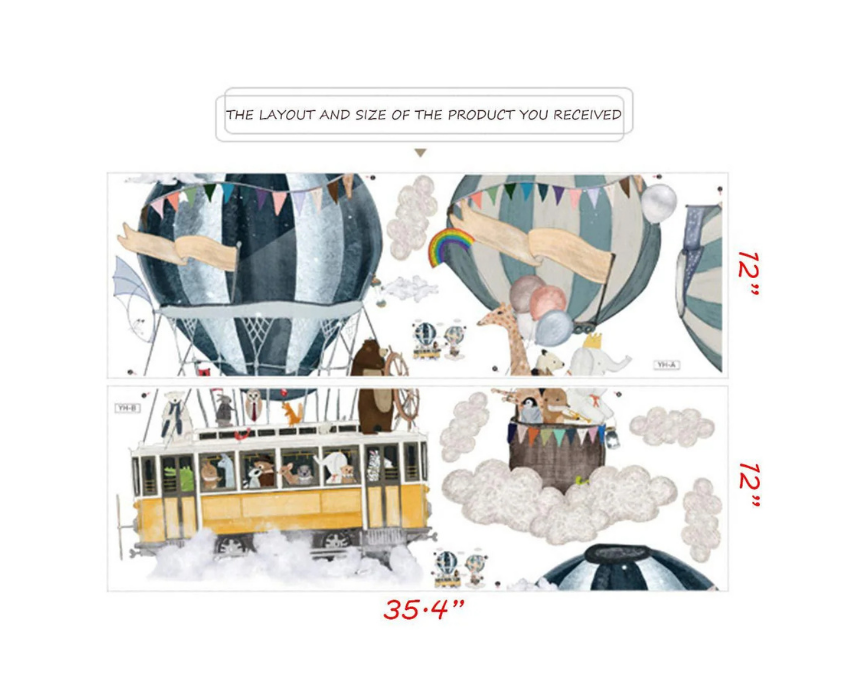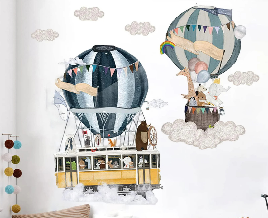 This Hot Air Balloons and Animals Wall Decal features a soothing blue, grey, and beige palette with playful animals, perfect for a kids’ room or nursery. Measuring 66cm high and 82cm wide, it adds a calming yet imaginative touch to any wall. Easy to apply, it transforms the space into a whimsical and engaging environment for children.