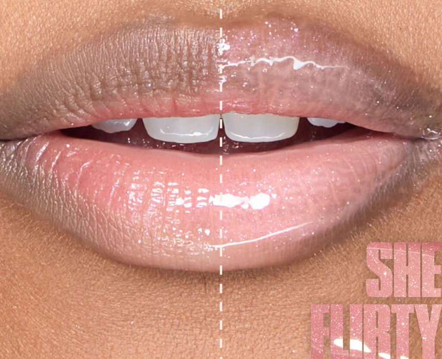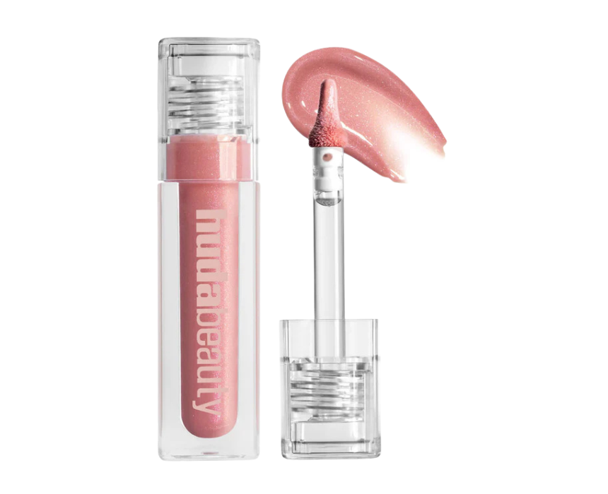 Huda Beauty Icy Nude FAUX FILLER Lip Gloss in She Flirty delivers ultra-shiny, shimmery lips with a glass-like finish. Infused with vegan collagen and Vitamin E, this nourishing gloss smooths, blurs fine lines, and creates instantly fuller-looking lips without any tingling sensation. Perfect for layering over your favorite lip color or wearing alone for a high-shine, icy nude look.