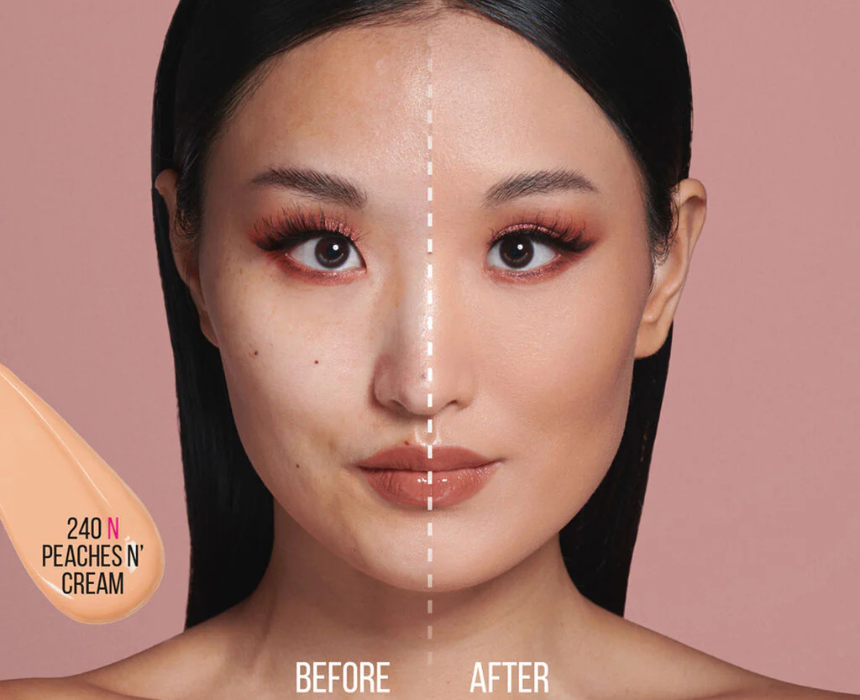 Huda Beauty #FauxFilter Luminous Matte Foundation in 245 Peaches’ Cream is a fragrance-free, liquid foundation delivering full coverage with a smooth luminous matte finish that lasts up to 24 hours. Its vegan, waterproof, transfer-proof, and sweat-resistant formula blends seamlessly to conceal imperfections and create a flawless, airbrushed complexion in any condition. Apply with a brush or sponge, starting at the center of the face and blending outward for best results.