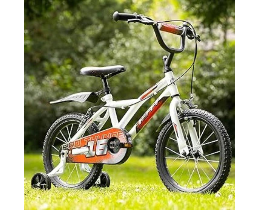 The Huffy 16 inch Pro Thunder bike is built for young riders, featuring a durable frame, bold sporty design, and stable tires for smooth everyday rides. With easy grip handlebars and a comfortable padded seat, it ensures control and comfort while pairing well with active outfits for outdoor adventures.