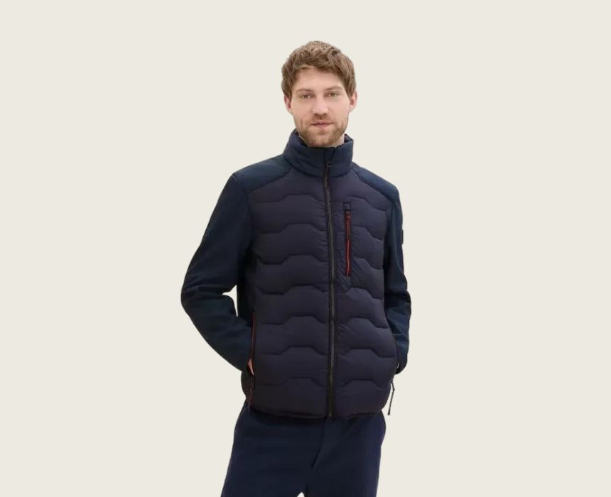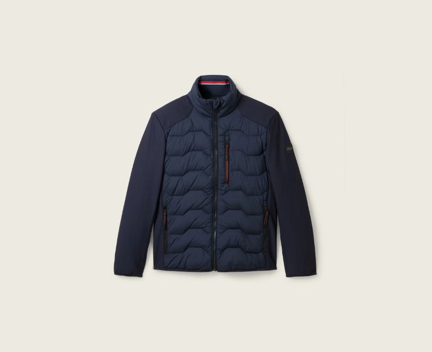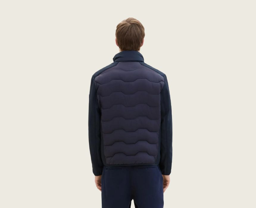 The Tom Tailor Hybrid Navy Jacket with Stand-Up Collar combines sleek design with practical functionality. Featuring a quilted finish, zippered closure, and closable pockets, this jacket is perfect for layering during chilly days. Pair it with jeans and boots for a modern, polished look that keeps you warm and stylish.
