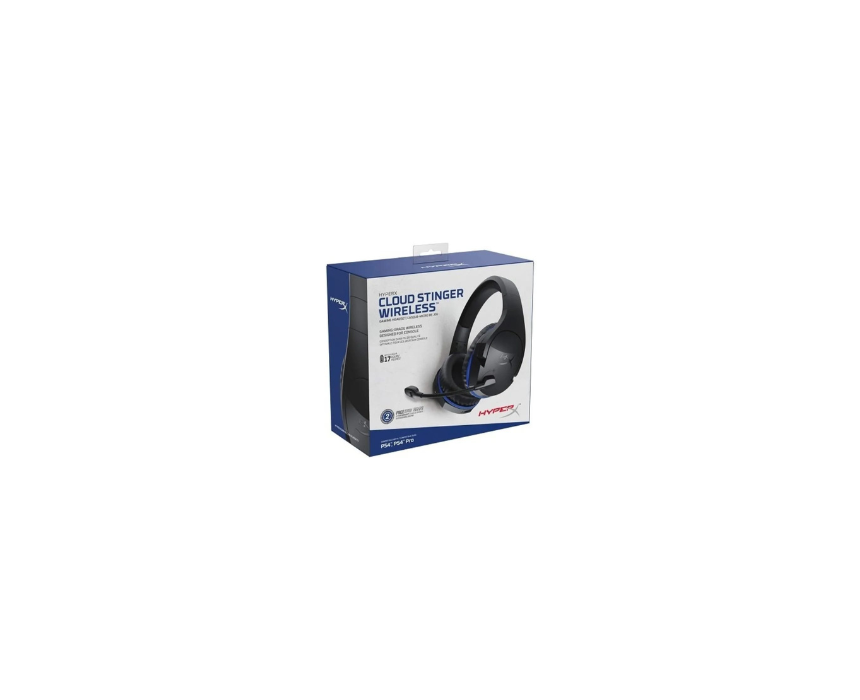 HyperX Cloud Stinger Wireless gaming headset offers a 2.4GHz wireless connection, 50mm drivers with enhanced bass, and signature Cloud comfort for PS4 Pro, PS4, PC, and Nintendo Switch. Featuring 17 hour battery life, 90 degree rotating ear cups, swivel to mute microphone, closed back design, and on earcup volume controls, it delivers immersive audio, comfort, and convenience for long gaming sessions