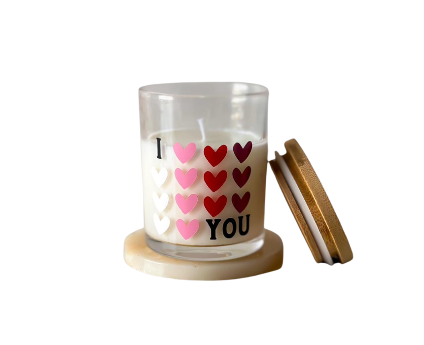 The “I Love You” Scented Candle is crafted from 120g of premium soy wax, delicately infused with warm vanilla and rich oud for a comforting, elegant aroma that lasts up to 30 hours. Designed to create a cosy and romantic atmosphere, it’s ideal for relaxing evenings or thoughtful gifting. Style it on a bedside table, coffee table, or shelf to add both fragrance and a touch of understated décor.