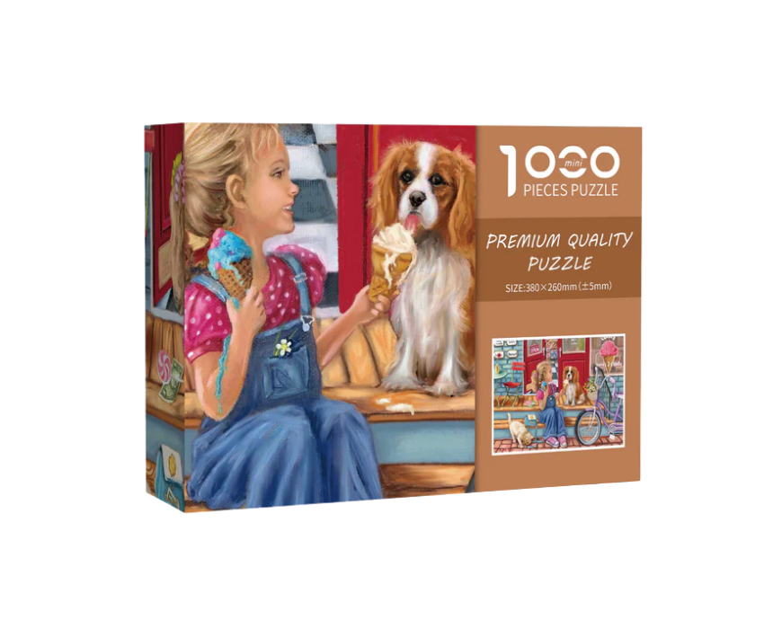This Ice Cream Mini Jigsaw Puzzle features 1000 pieces that assemble into a colorful 38 x 26 cm dessert-themed artwork full of fun and detail. Perfect for puzzle enthusiasts and sweet treat lovers, it offers a compact yet engaging build and can be styled as framed wall art, desk décor, or a playful gift.