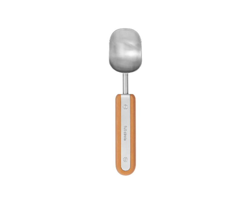 The Full Circle The Baller Stainless Steel Ice Cream Scoop FC22708 features a thin, spade-like edge that easily scoops even hard ice cream for perfect, uniform balls. Its versatile design reaches into small pints and corners, while rust-resistant stainless steel and a comfortable kraft paper handle ensure durability and ease of use. Dishwasher-safe and made with sustainable materials, it offers eco-friendly performance and hassle-free cleanup.