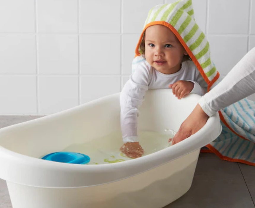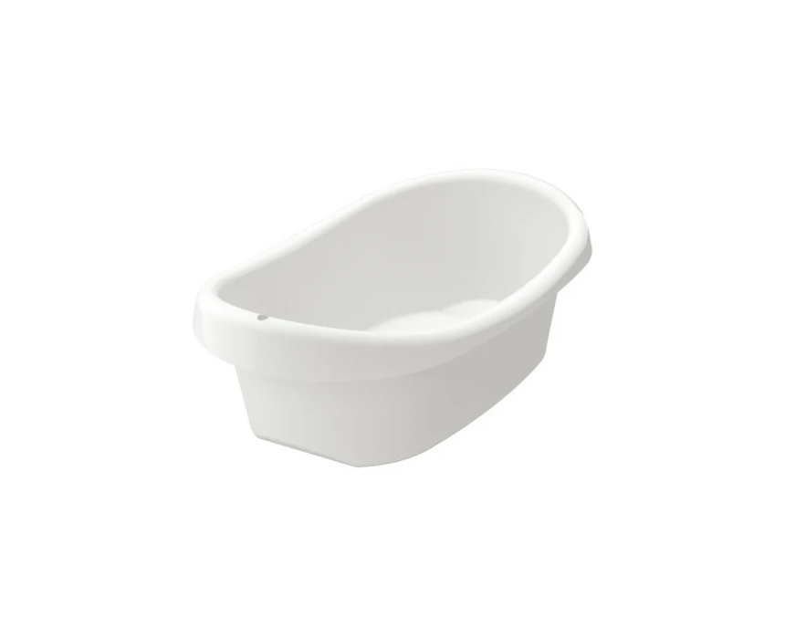 The IKEA Baby bath in white and green prioritizes safety and stability during bathtime. It features slide protectors underneath to ensure stable placement on surfaces and includes soft anti-slip protection on the bottom for the baby’s added safety. As a bath accessory for infants, this item is meant to be used for bathing a baby and is not designed to be worn or styled.