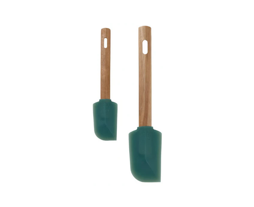 This BACKRODING spatula set includes 2 pieces designed for versatile kitchen use. Ideal for scraping the last batter or dough from bowls and spreading icing or sauces evenly, they offer precision and ease during food preparation. Made with a combination of wood and dark grey green materials, they bring both functionality and style to your kitchen.