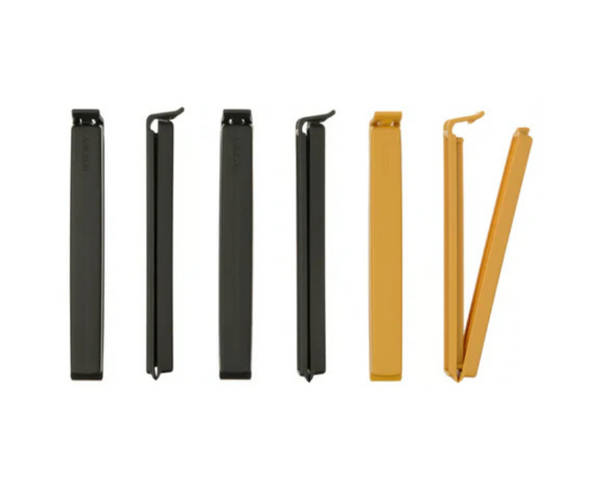 These sealing clips come in a set of six in different colors and are designed to securely close bags, helping keep contents fresh for longer. Each clip features a smart locking mechanism for reliable use, making them practical for everyday kitchen storage. They are also dishwasher safe and freezer safe, allowing for easy cleaning and versatile use.