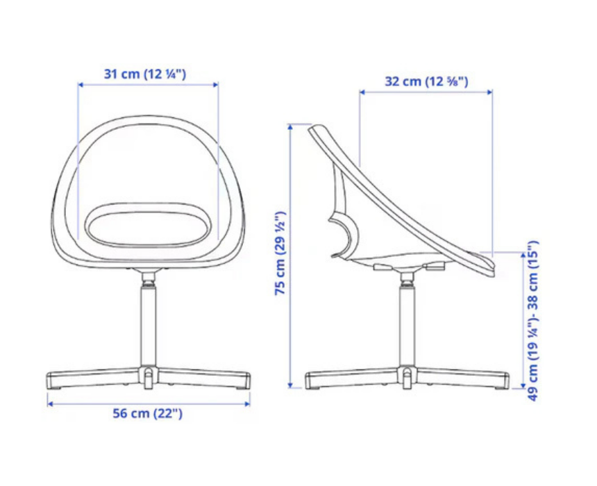This height adjustable children’s desk chair can be swiveled and set to the desired height for comfortable sitting. It is designed to support a good seating position and adapt as the child grows, making it suitable for study or desk use.