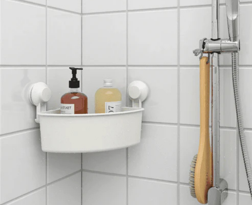 This wall shelf allows water to drain easily through the holes at the bottom, keeping items dry and organized. It attaches securely to smooth surfaces like glass or tiles using suction cups with no tools or drilling required. Easy to remove without leaving marks, it provides a practical and damage free storage solution.
