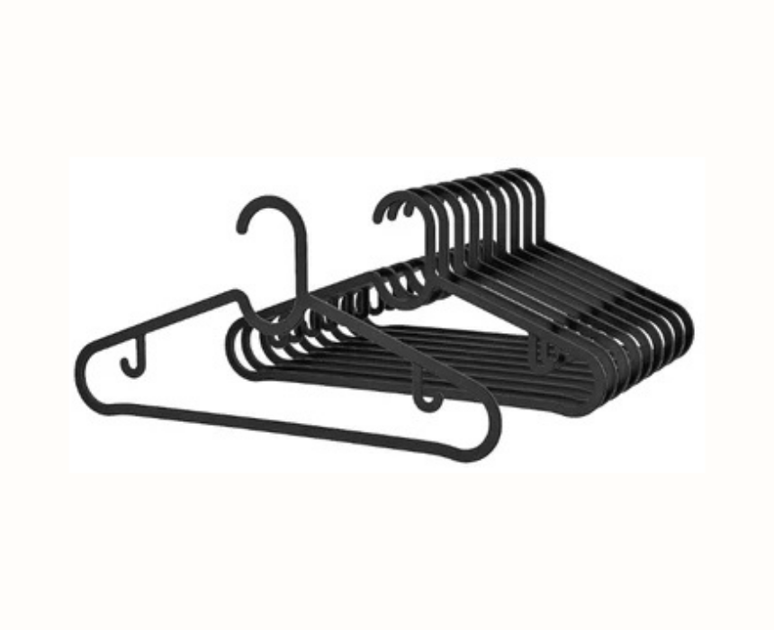 This set of black hangers is ideal for organizing trousers, shirts, and skirts while saving space in your wardrobe. Their slim design takes up less room than wooden hangers, allowing you to maximize storage and keep your clothes neatly arranged. Perfect for creating a coordinated and tidy closet throughout the home.