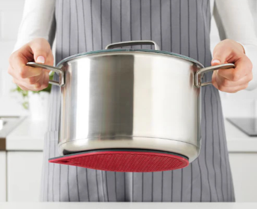 This pot stand securely attaches to pots with magnetic bottoms, allowing you to lift and carry them safely. It provides stability and convenience when handling hot or heavy cookware, making kitchen tasks easier and more efficient.