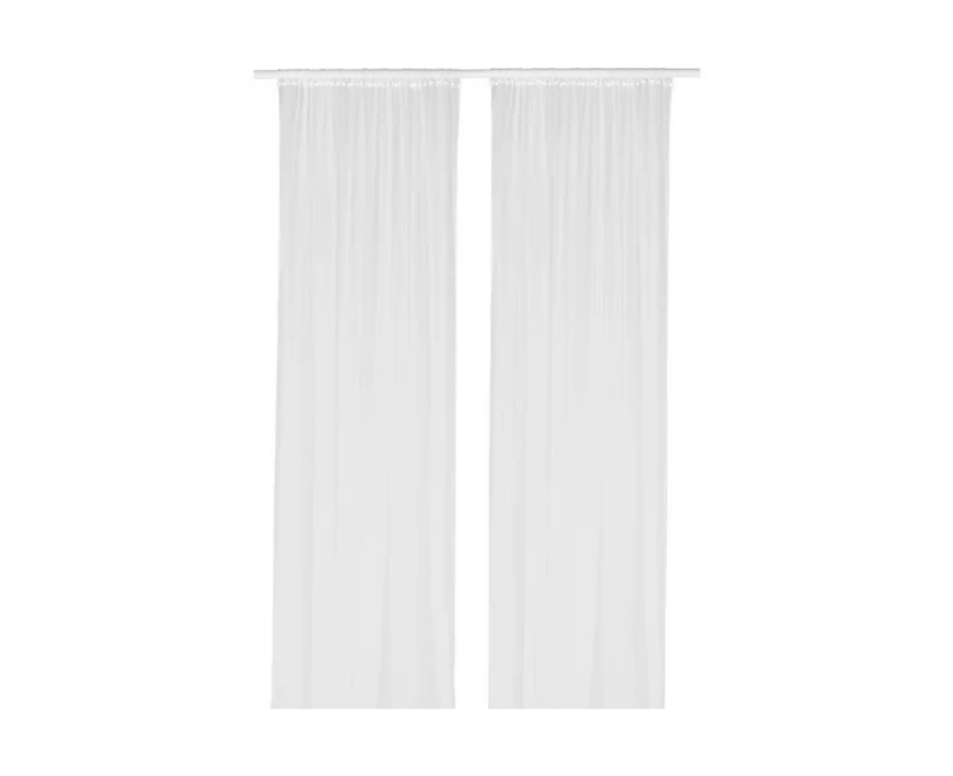 These white net curtains come as a pair and measure 280×300 cm, offering a light and airy way to soften natural light while maintaining privacy. Their sheer fabric creates a bright and open feel in any room, making them suitable for living rooms, bedrooms, or dining spaces where a delicate window covering is preferred.