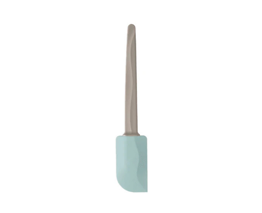 This spatula is designed with a small support on the underside to keep countertops clean. It makes it easy to scrape the last bits of batter or dough from bowls and helps spread icing, sauce, or other mixtures evenly. A practical tool for baking and cooking tasks.