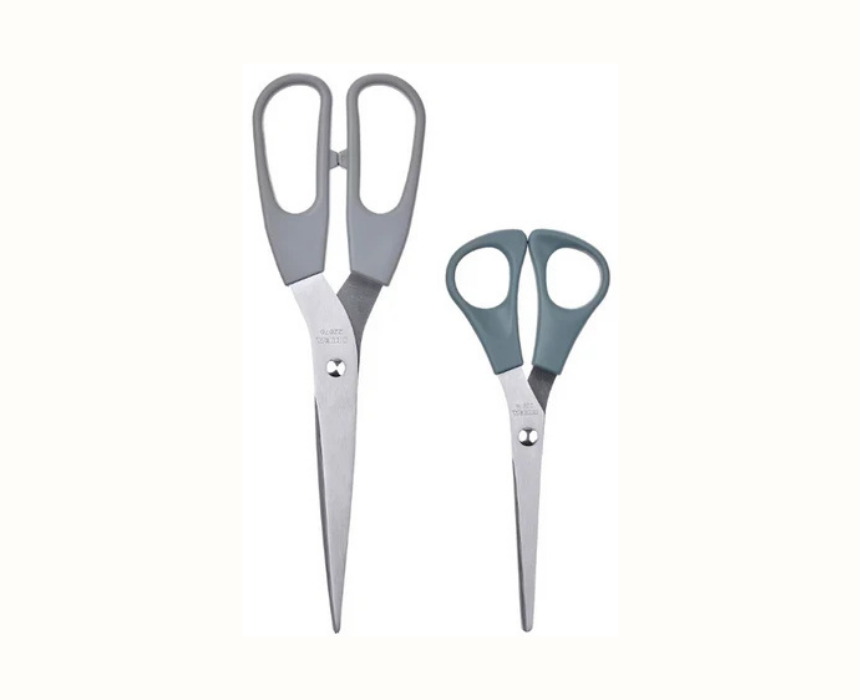 This set of two scissors in stainless steel grey and grey turquoise is designed for both right handed and left handed users. They offer a practical and versatile cutting solution suitable for everyday tasks around the home or office.