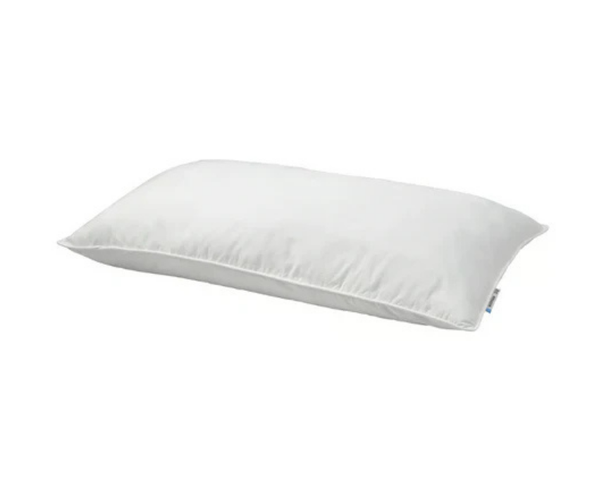 This SKOGSFRAKEN low pillow measures 50×80 cm and is designed for comfortable support, especially for stomach sleepers. It features a soft, fluffy polyester filling and a breathable lyocell and cotton blend cover that helps absorb moisture for a cooler sleep. Ideal for a restful and comfortable night.