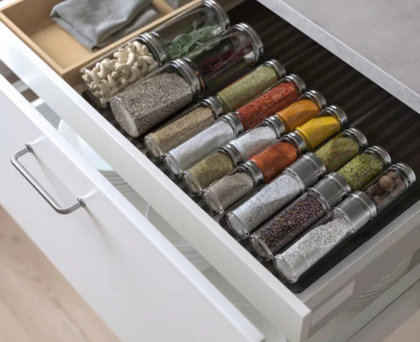 This spice jar has a 10 cl capacity and is made of clear glass with a stainless steel lid for a simple and functional design. It features a tight fitting screw cap with a silicone seal to keep contents secure and fresh. The transparent glass makes it easy to see when refilling is needed, and it can be used for spices, jam, or small beverages.