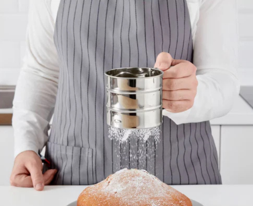 This flour sifter helps create smooth lump free dough for better baking results. It can also be used to lightly dust bread with flour while rising to prevent the surface from drying out, making it a practical tool for everyday baking.