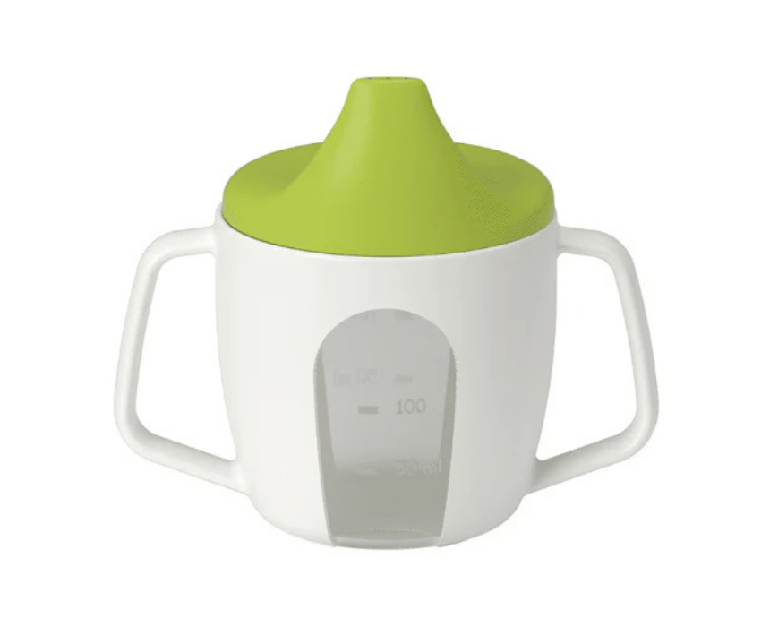 This baby beaker is designed to support independent drinking with a spout and two large handles for easy gripping. The transparent body lets you monitor the liquid, while the secure lid helps reduce spills. Made from safe polypropylene, it is microwave and dishwasher friendly for convenient everyday use.